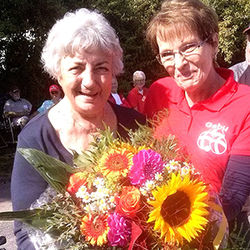 Mit der Namensgebung des Turniers erinnern die Veranstalter an einen Mann der ersten Stunde der Neuwieder Boule-Szene, der viele Jahre die Geschicke des Vereins mitprägte und zudem auch selbst ein äußerst geschickter Boulespieler war. Eine besondere Freude war für alle Teilnehmer die Anwesenheit seiner Witwe, Helene Müller, die der großen Boule-Familie ein erfolgreiches Turnier wünschte und einige Stunden das Geschehen auf den 18 Boulebahnen interessiert verfolgte. Begrüßt wurde sie von Gaby van Westenbrugge, der Abteilungsleiterin der Neuwieder Boulespieler, mit einem herrlichen Blumenstrauß (siehe Foto).