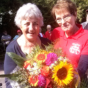 Mit der Namensgebung des Turniers erinnern die Veranstalter an einen Mann der ersten Stunde der Neuwieder Boule-Szene, der viele Jahre die Geschicke des Vereins mitprägte und zudem auch selbst ein äußerst geschickter Boulespieler war. Eine besondere Freude war für alle Teilnehmer die Anwesenheit seiner Witwe, Helene Müller, die der großen Boule-Familie ein erfolgreiches Turnier wünschte und einige Stunden das Geschehen auf den 18 Boulebahnen interessiert verfolgte. Begrüßt wurde sie von Gaby van Westenbrugge, der Abteilungsleiterin der Neuwieder Boulespieler, mit einem herrlichen Blumenstrauß (siehe Foto).